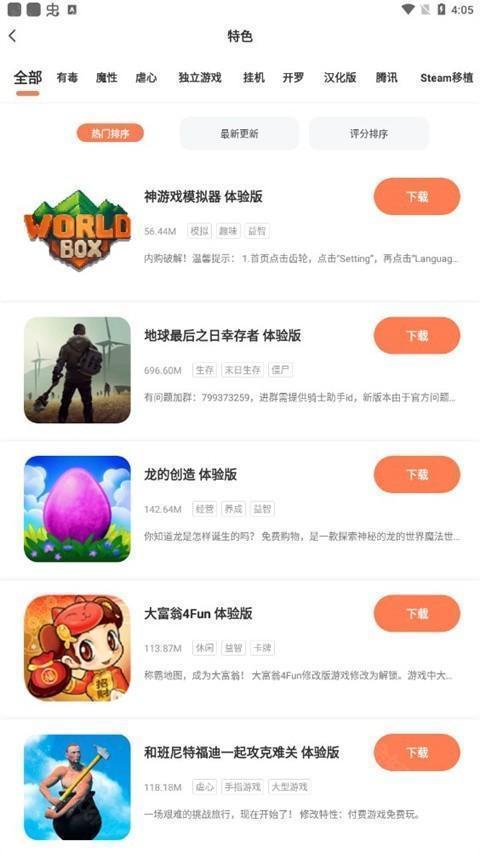 3.然后就可以看到大量已经分享好的游戏,你可以根据自己的需要自由选择下载