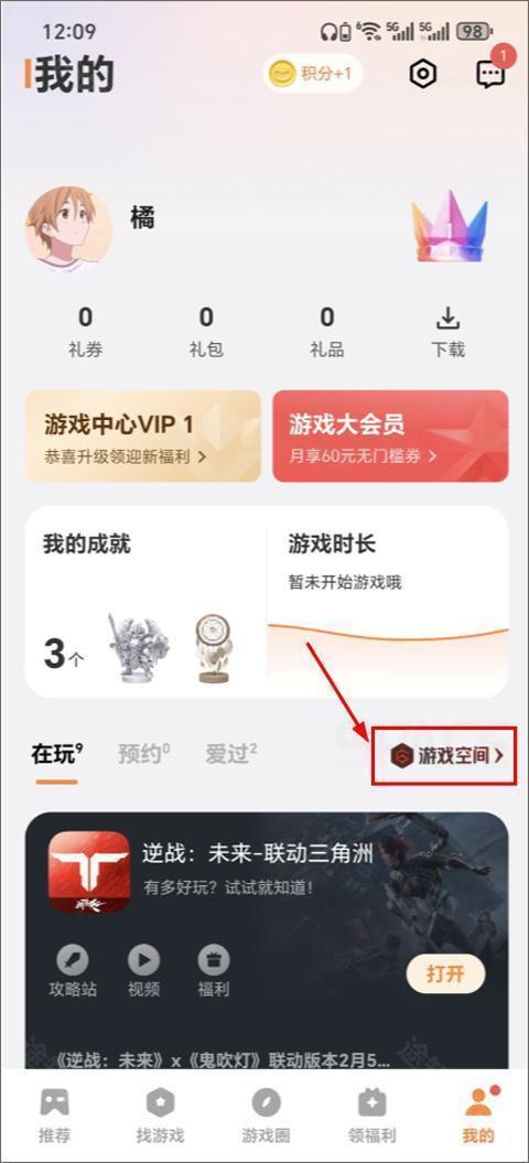 1、打开vivo游戏中心app,进入后点击右下角“我的”,再点击“游戏空间”;