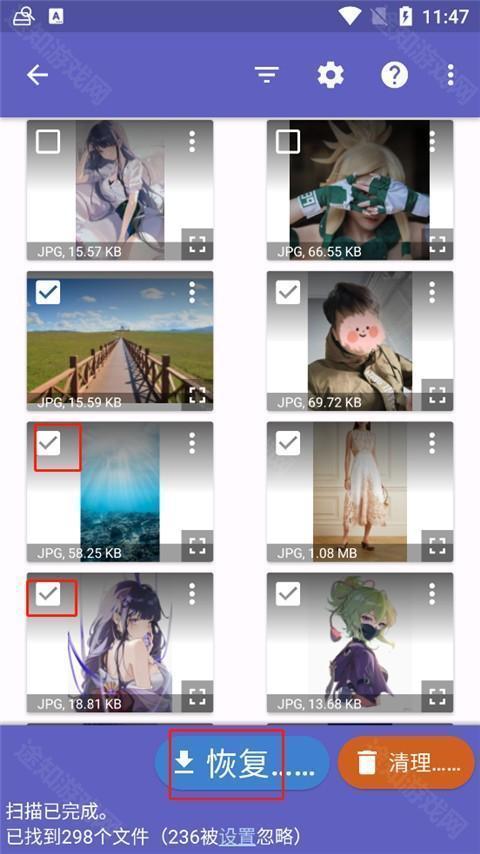 勾选需恢复的照片,点击“恢复”按钮,选择保存路径(建议保存到其他磁盘,避免覆盖原数据)。