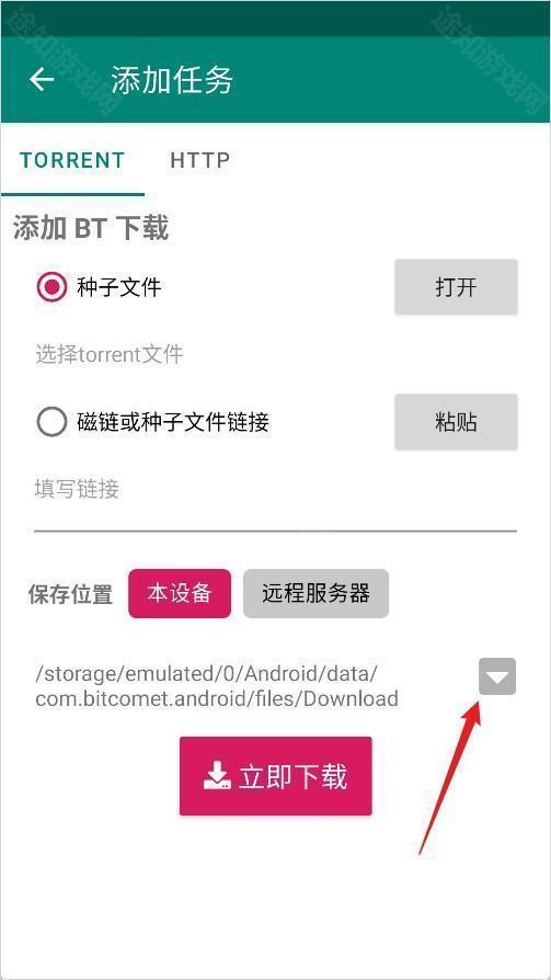2、进入添加任务页面后,点击保存位置右侧的“倒三角”图标。