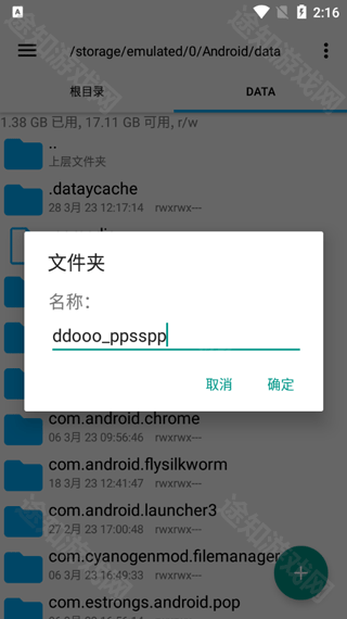 1、首先在手机文件管理器中新建一个文件夹,将下载的iso游戏文件放入该文件夹中,记住文件夹位置,例如:ddooo_ppsspp
