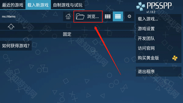 2、打开ppsspp模拟器最新版2025,在“载入新游戏”界面,点击“浏览”