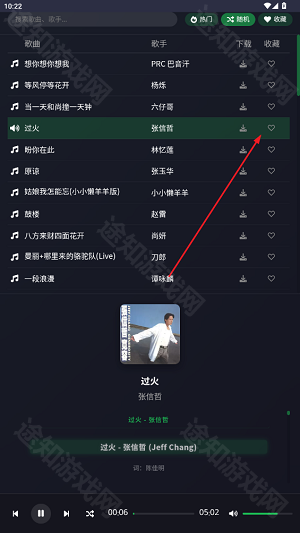 1、进入米兔音乐后,选择自己喜欢的音乐,如图点击爱心;