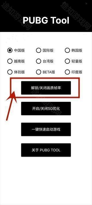1、打开pubgtoll画质助手官方版,点击【解锁画质帧率】,