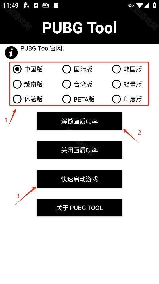 2、进入PUBGTool画质助手主界面,选择相对于的PUBG版本(中国版所对应的是和平精英)。