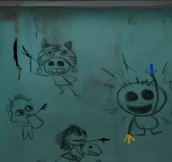再查看一下左边的柜子,图案刚好对应我们黑板上的图案,调整【虎头↖】【奶瓶↗】【木马→】【蓝色↑】【黄色↓】打开下面的柜子,拿到一个【剪纸小人】和一面【锦旗】,剪纸小人的姿势看起来有点眼熟,不就是安全通道的那个跑步小人吗?出来,走廊触发老奶奶剧情,这奶奶一看就是言她的盲奶奶吧!后面还没玩不确定哦。