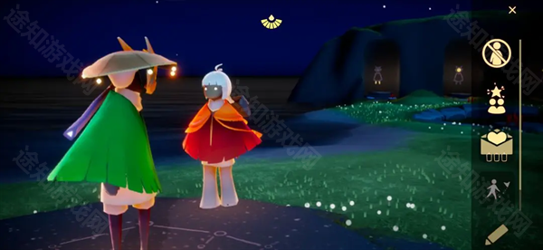 找到石碑前的人影可以打开先祖商店。在先祖商店中我们可以用蜡烛解锁姿势或祝福,用爱心购买新的装扮,还可以购买乐器与好友合奏。