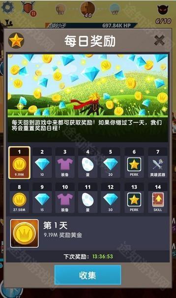放置游戏都是前期累手指,后期靠挂机,再加上这游戏也会在你不在的时间里帮你收集金币,睡一觉起来就变强了,没有打不过的怪,氪金什么的对放置游戏来说也不太重要,现在既然出了2就要有一定的创新才行,游戏加入了每日签到奖励,每天回游戏都有收获。