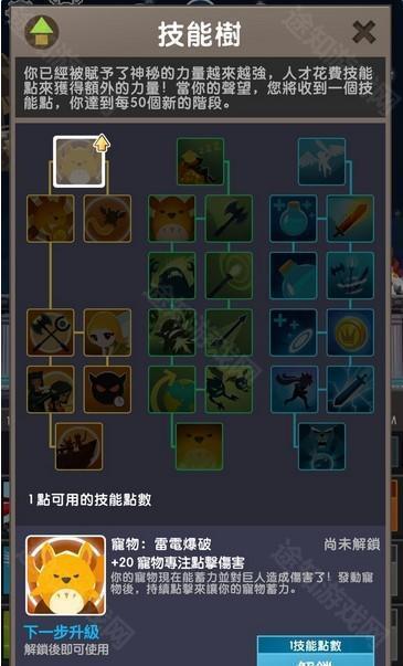 这次的技能树真是厉害了,在游戏中你会获得技能点,有三个技能树你可以选择从哪个开始加,每个都好想要啊,不过技能点不是那么好得到的,除此之外还可以获得武器,武器可以升级,如果收集了全套的武器套组还能变得更强,当然,武器和之前说的装备都不是那么好得到的,由此可见,放置游戏都一样,只有玩的时间长才能当上老大,时间越久你就越厉害。