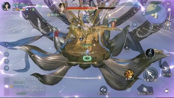 通过地面阶段后就是飞天阶段,时刻注意躲避技能,不断调整自身位置。上天以后除了正常射出音刃攻击外,记得使用获得内力屏障技能,有3秒的无敌时间,此外燕回风也能够无敌0.5秒,副本过程中需灵活运用。