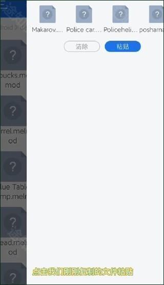 1、在第三方渠道下载好的模组,将文件使用“ES浏览器”打开,然后复制全部模组