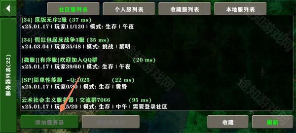 2、打开服务器列表后,我们点击一个服务器进入,也可以添加服务器