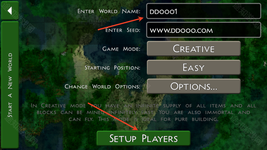 3、创建地图,输入名称、输入种子、游戏模式、出生点难度等;