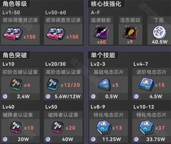 1、青衣一位电属性的击破代理人,主要依靠特殊技和蓄力普攻将怪物打入失衡并提高其失衡易伤倍率,然后切换主C输出。角色养成消耗材料如图。
