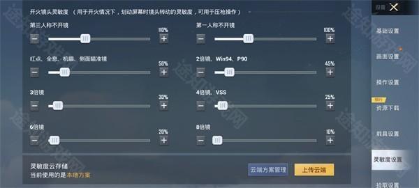 3、镜头灵敏度:第三人称不开镜:120%;第一人称不开镜:110%;红点、全息、机瞄、侧面瞄准镜:40%;2倍镜、win94、p90、猎弓:30%;3倍镜:20%;4倍镜、vss:15%;6倍镜:8%;8倍镜:5%