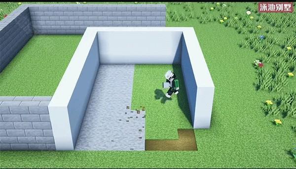 5、在使用蓝色玻璃做一面墙,围墙下面在垫一层输液装饰,让结构更加美观。