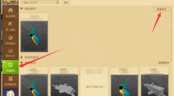 2、在弹出的界面找到“本地联机”,然后点击新建房间;