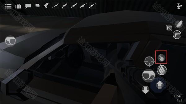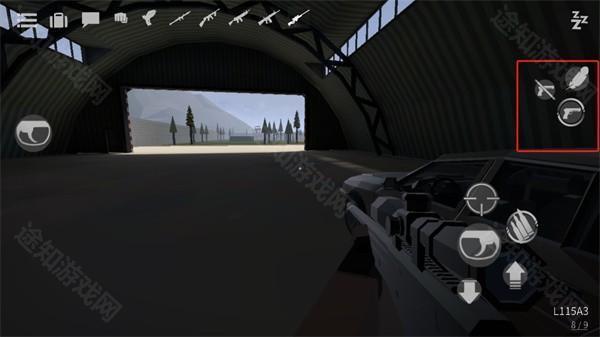 4、点击右边“手枪”按钮拿枪,可以让角色切换到持枪状态,中心用于开枪,+号可以新增靶子角色