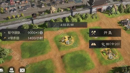 这样当玩家们手中武将达到一定等级时,就可以通过"开垦"主城中的"土地",以及攻占城外的"领地"来获取资源。