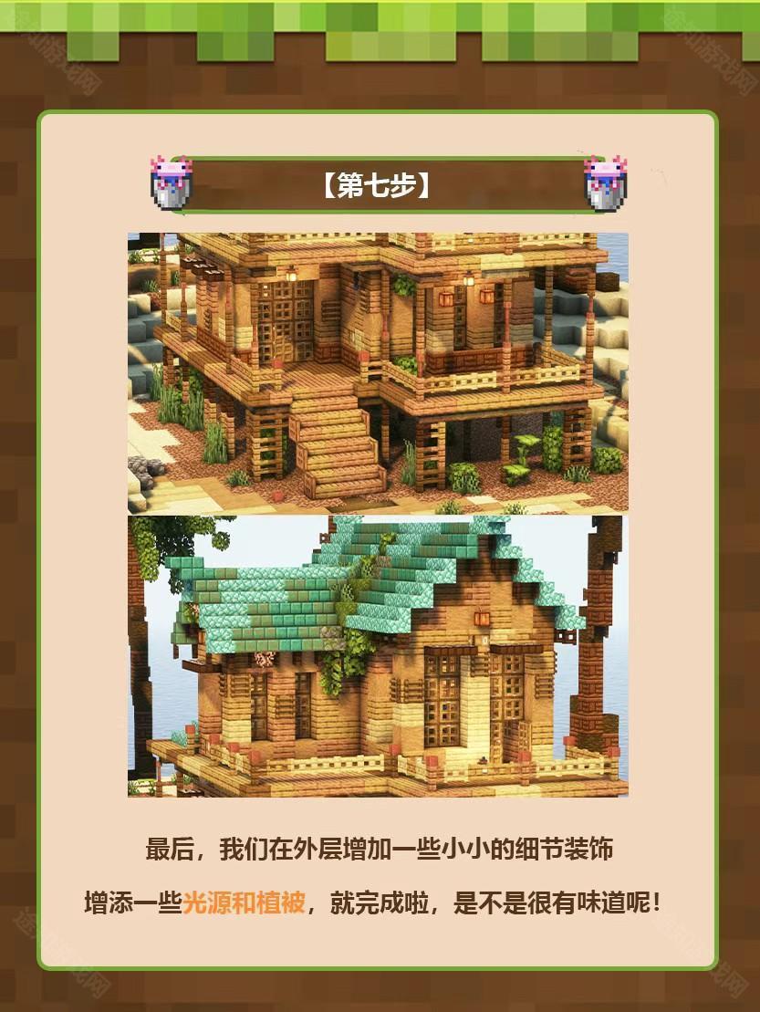 6、然后就是给第二层封顶了~屋顶的材料也很有讲究!交替使用海晶石、涂蜡的氧化切制铜和锈蚀的切制铜楼梯