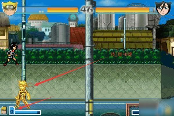 4、能量满3格后,同时按J键和K键,即可变身成为金色鸣人。