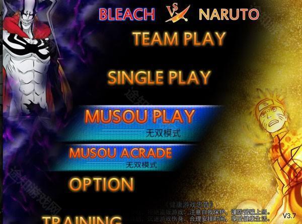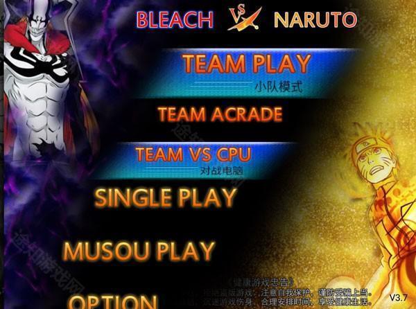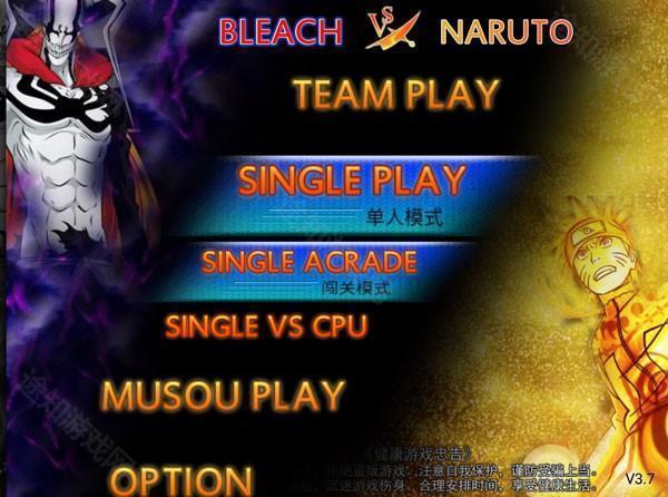 1、打开死神vs火影,进入选择玩法模式,小队模式TEAM PLAY、单人模式SINGLE PLAY、无双模式MUSOU PLAY。