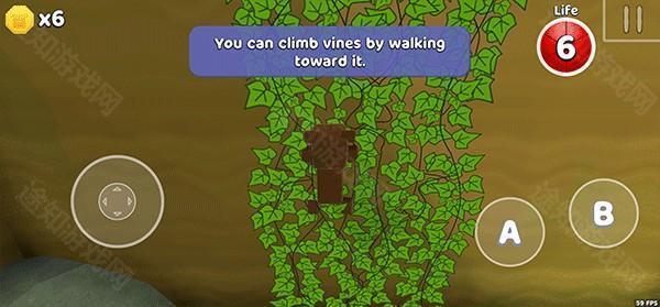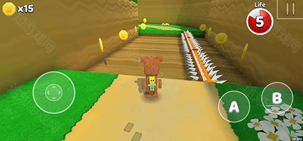 2、游戏中我们要做的就是操纵小熊去冒险,期间如果遇到高处或坑洼,连续点击两次A就可以跳上去