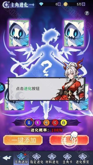 利用主角进化功能,消耗对应材料进行进化,提升主角品质与战力。