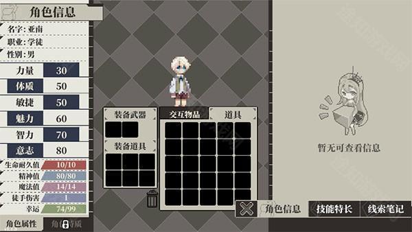 游戏中的探索元素丰富,场景中隐藏了大量线索和秘密,需要玩家仔细寻找和分析,并且作品画风可迎合玩家要求,结合二次元、克苏鲁风、像素风,阴森的背景氛围,有趣可爱的二次元像素画风,精致融入一体。
