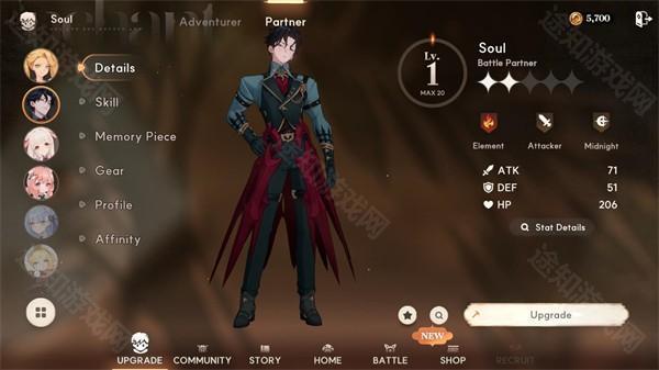 8、在下方菜单中点击“Upgrade”,再进入“Partner”界面,可以为伙伴进行升级,提升整体战斗力。