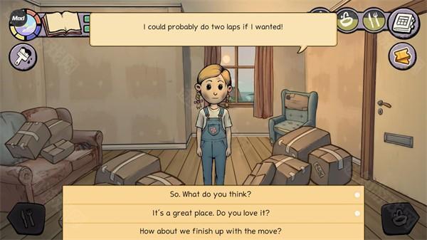 5、通过左下角和右下角的切换按钮,可以进入不同的生活场景,如卧室、厨房、客厅等,每个场景都有不同的互动选项与养育功能。