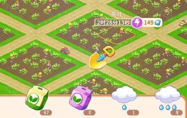 庄园中,我们可以根据,订单需求或者个人的喜好,在种植想要的作物,如:草莓,甘蔗,水稻,玉米等一些生活需要及现实中的作物。更加体现在丰收时仓库爆满的自豪感,而在收获后,我们可以在仓库中售卖获取金币,完美的展示出了现实中种植,等待,化肥的使用,收获,售卖的流程。