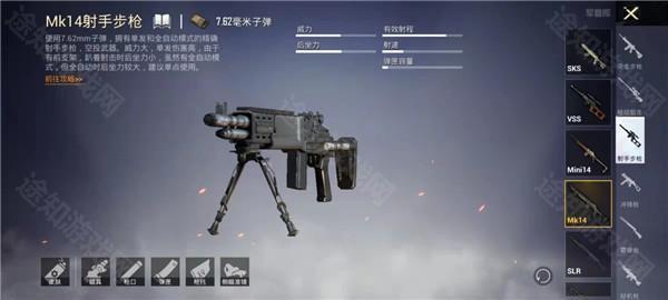 MK14则是游戏中伤害最高的一把连狙,伤害高还能连点,其作用完全不输AWM。只要给MK14配一个托腮板,MK14连点起来还是很舒服的,手感相当不错。此外MK14还是少有可以全自动的狙击枪,另一把可以全自动的狙击枪是无人问津的VSS。