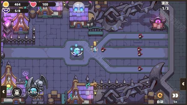 4、进入游戏如图,游戏采用策略塔防玩法,玩家可放置角色来抵御敌人进攻;