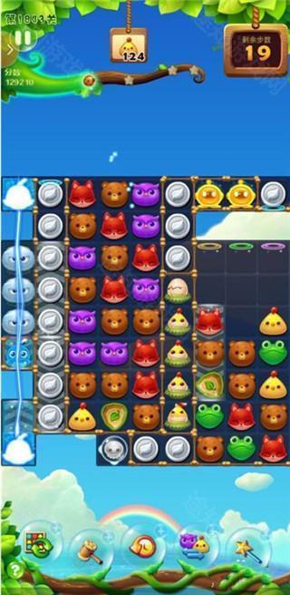 滑动手指让三个及以上的同色小动物横竖相连即可消除,完成每关的指定消除目标即可过关!